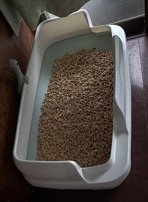 猫のトイレ交換。うちの猫は横綱だ。トイレから体がはみ出すのでやむなく交換。