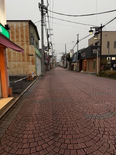 この時間帯に初めて通過。銀座が泣くような静けさだ、お魚屋さんがやっていたのでマグロブツ購入。ほぼ7割近い店が閉まってる。これが地方の銀座か――店じまいもある。寂れてゆくのか?