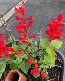 サルビア・スプレンデンス ‖ 鮮やかな赤色が特徴で、夏から秋にかけて長く咲き続ける一年草。花壇や鉢植えで非常によく見られる。もちろん、こんな名前はいちいち覚えられない。調べて記録しているだけである。
