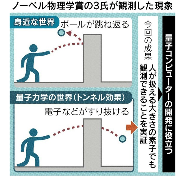 ▶︎量子基礎研究にノーベル物理学賞 米3氏「トンネル効果」観測
