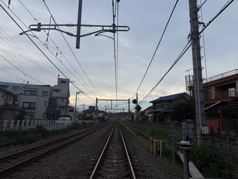 秩父方面を望む。防災無線から「夕焼け小焼け」が流れている。