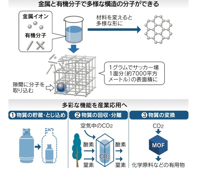 ▶︎北川氏にノーベル化学賞 ‖ 金属有機構造体を開発、脱炭素に寄与 [既報]