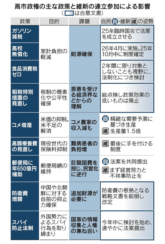 各省庁が派遣する6人の事務秘書官の構成は石破政権を踏襲した。新たな連立パートナーである維新と結んだ政策協定の実行に備える意図が透ける。