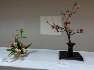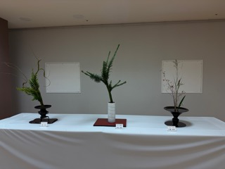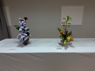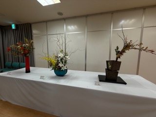 会場には、誠に見事な生花が数十点、美しく並べられていた。
