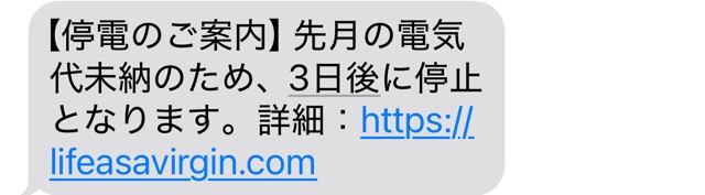 【質問】Http://lifeasavirgin.com、このサイトはなんですか?電気料金未納のため三日後に停電します、というショートメールが届きました。
