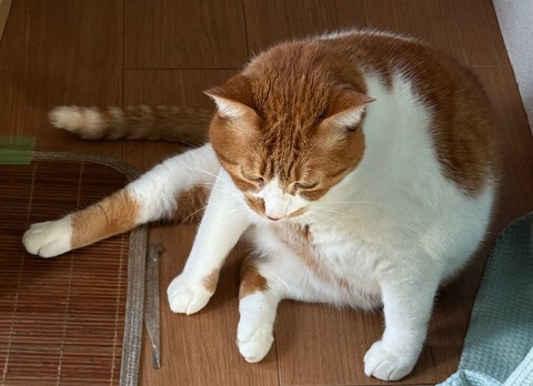 【猫日記】猫が腎臓系に病気ありか。トイレを時々使わないのは、腎臓系に病気があるかもしれないという。今はドライフードはほんの少ししか食べないが、チュール系のおやつは夢中で食べるので、食欲がないわけではない。以前は無かった、しきりに見かける写真の姿から、腹部(内臓)が具合悪いのか、それとも足の不具合か?両方かもしれない、と思う。