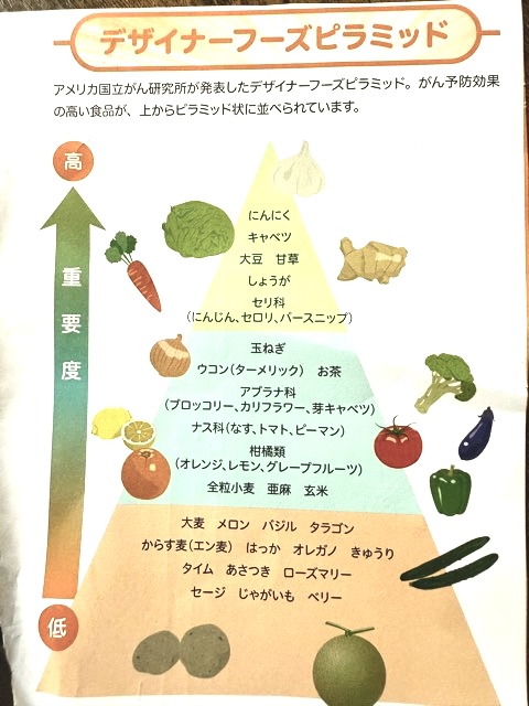 アメリカ国立がん研究所が発表した食品リスト。上から順に重要度が高い。玄米が思ったより下部に存するのが意外である。