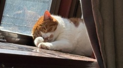 良い天気に恵まれて窓際で寝そべる至福の「きなこ」改めタロ君