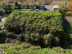 帰路の石階段をのぼる途中、ふと振り返ると、64段の下に朝気が揺らいでいる。葛の葉が風にゆれ、その屋根の下にある古い家屋は葛の葉とともに佇んでいる。