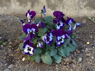 我が山小屋の庭先に辿り着いた。スミレ科パンジーの仲間「ビオラ」。人面草なので賑やかである。植えてから3ヶ月くらいたった。