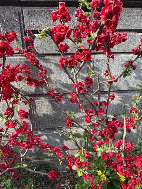 石壁を 背にして燃ゆる ボケの花