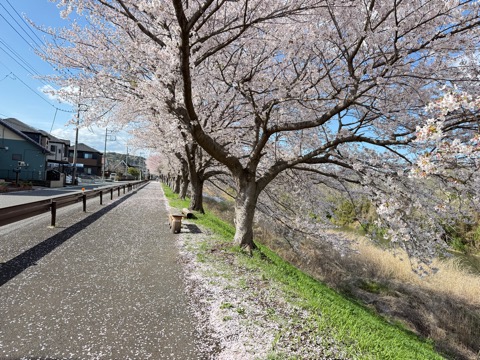午後からは晴れて桜吹雪の舞う入間川沿道をウォーキング。