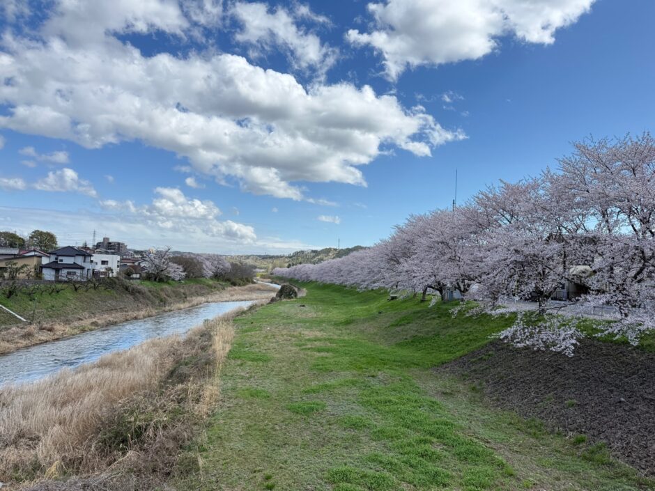 午後からは晴れて桜吹雪の舞う入間川沿道をウォーキング。